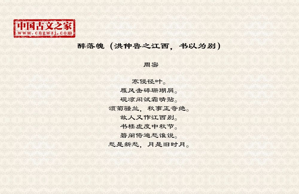 《醉落魄(洪仲鲁之江西,书以为别)》的原文打印版(周密)