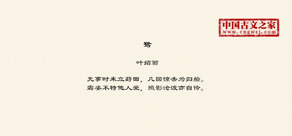 无事时来立葑田,几回惊去为归船。霜姿不特他人爱,照影沧波亦自怜。