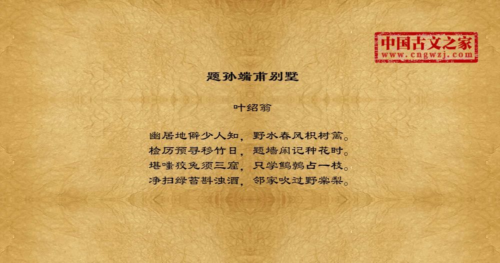 应怜屐齿印苍苔,小扣柴扉久不开。 春色满园关不住,一枝红杏出墙来。 ...