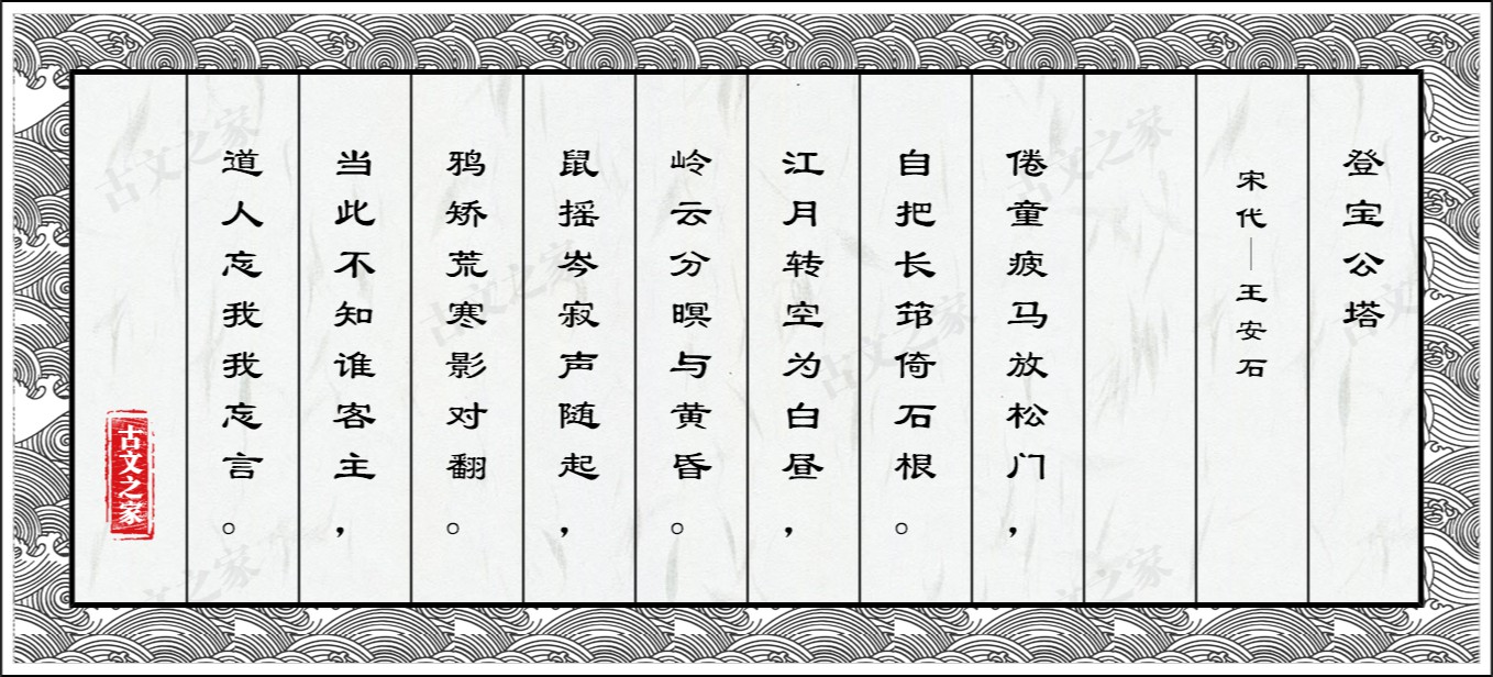 ①宝公塔:宝公名宝志,为南朝高僧,梁天监十三年(514年)卒,葬于钟山定林寺前,梁武帝为建塔于其上,名宝公塔。塔前有寺。熙宁九年(1076年),王安石子王雱卒,其祠堂就在宝公塔院。
