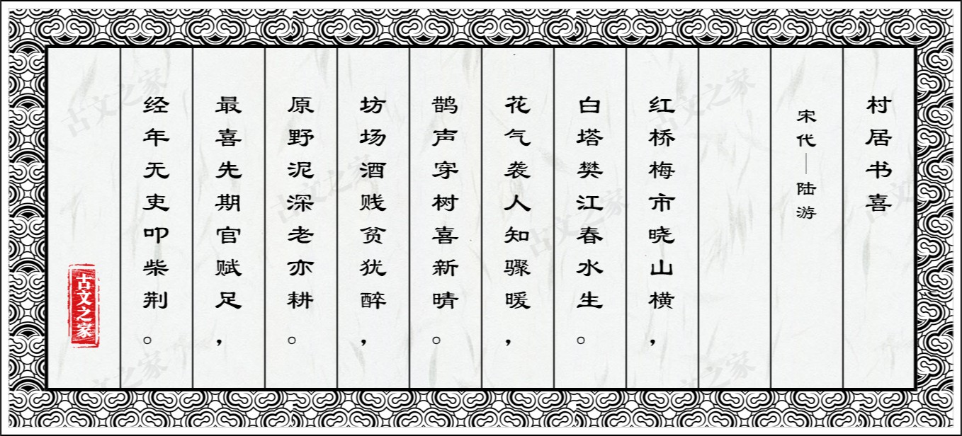红桥梅市晓山横,白塔樊江春水生。