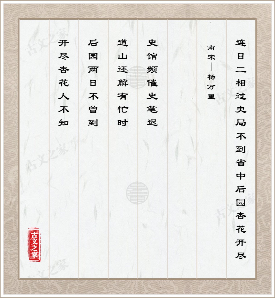 《连日二相过史局不到省中后园杏花开尽》的原文打印版杨万里