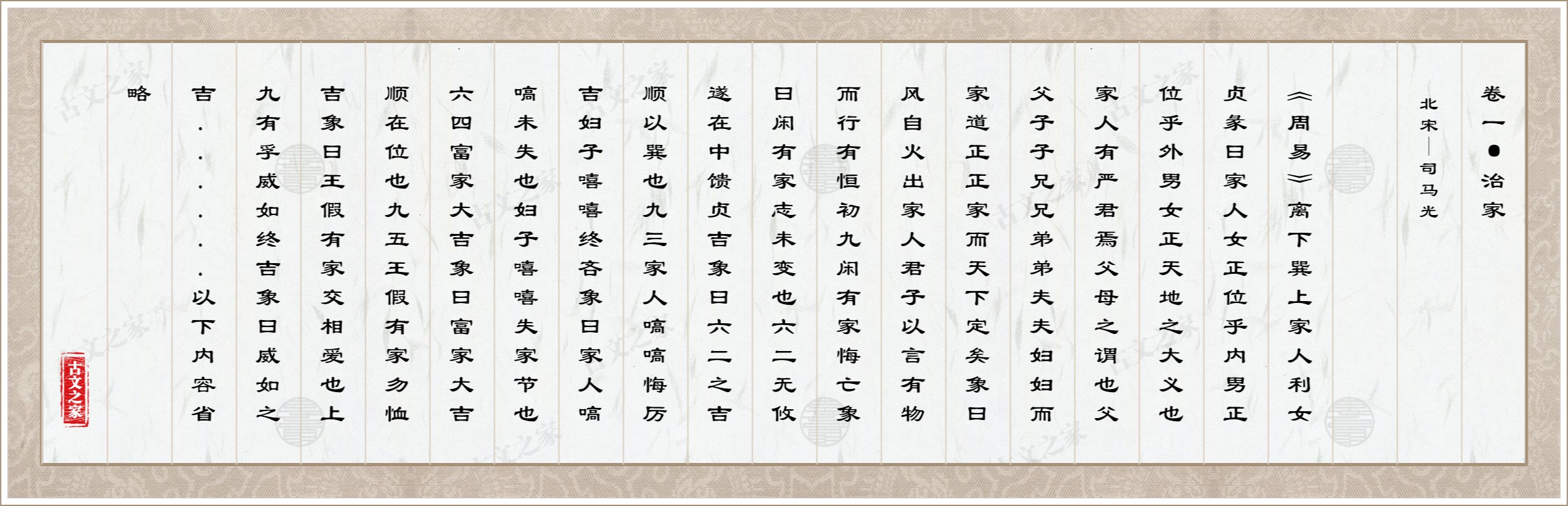 家人,女正位乎内,男正位乎外,男女正,天地之大义也。