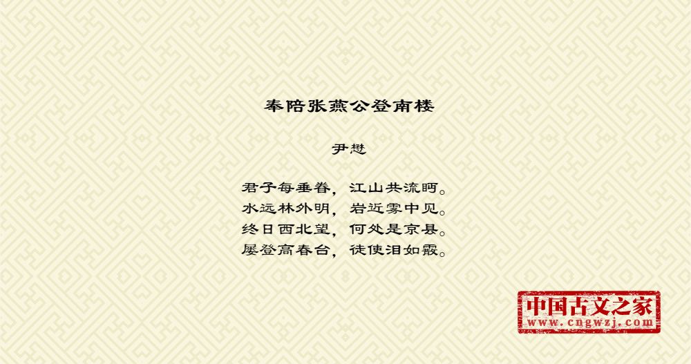 《奉陪张燕公登南楼》的原文打印版(尹懋)