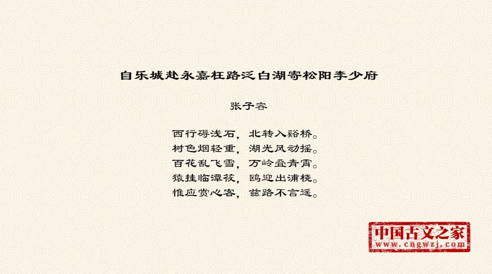 《自乐城赴永嘉枉路泛白湖寄松阳李少府》的原文打印版(张子容)