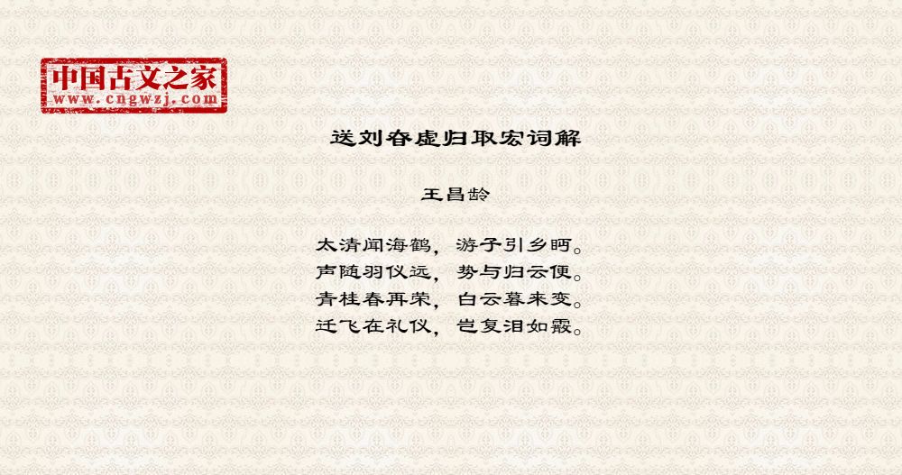 太清闻海鹤,游子引乡眄。声随羽仪远,势与归云便。青桂春再荣,白云暮来变。迁飞在礼仪,岂复泪如霰。