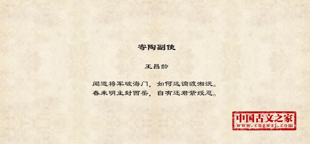 闻道将军破海门,如何远谪渡湘沅。春来明主封西岳,自有还君紫绶恩。