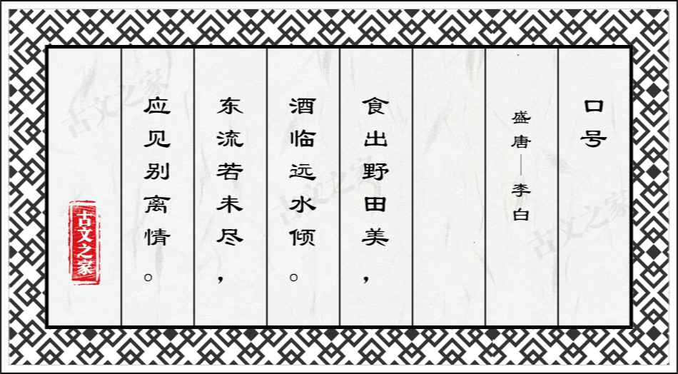 别名:口号留别金陵诸公,《口号》由李白于 726年 在 江苏省南京市 创作