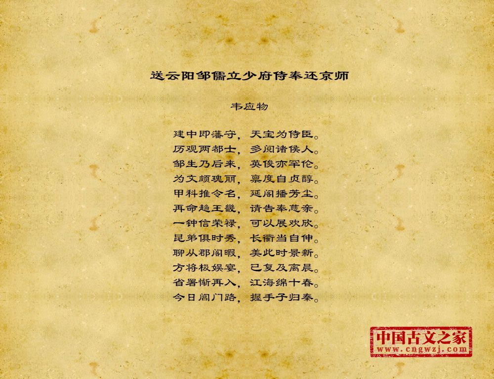 《送云阳邹儒立少府侍奉还京师》的原文打印版(韦应物)