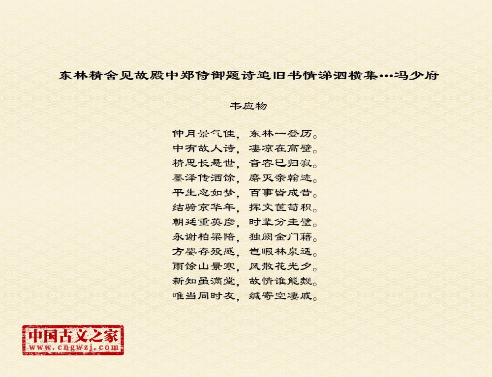 《东林精舍见故殿中郑侍御题诗追旧书情涕泗横集…冯少府》的原文打印版(韦应物)