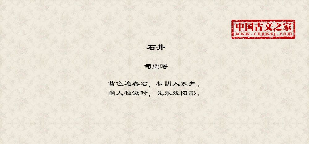 苔色遍春石,桐阴入寒井。幽人独汲时,先乐残阳影。