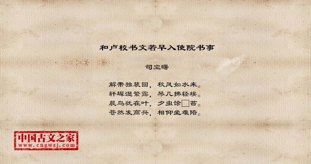 《和卢校书文若早入使院书事》的原文打印版(司空曙)