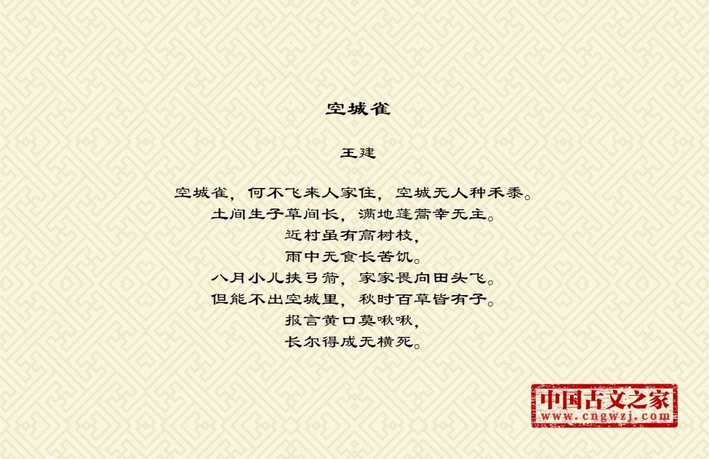 空城雀,何不飞来人家住,空城无人种禾黍。