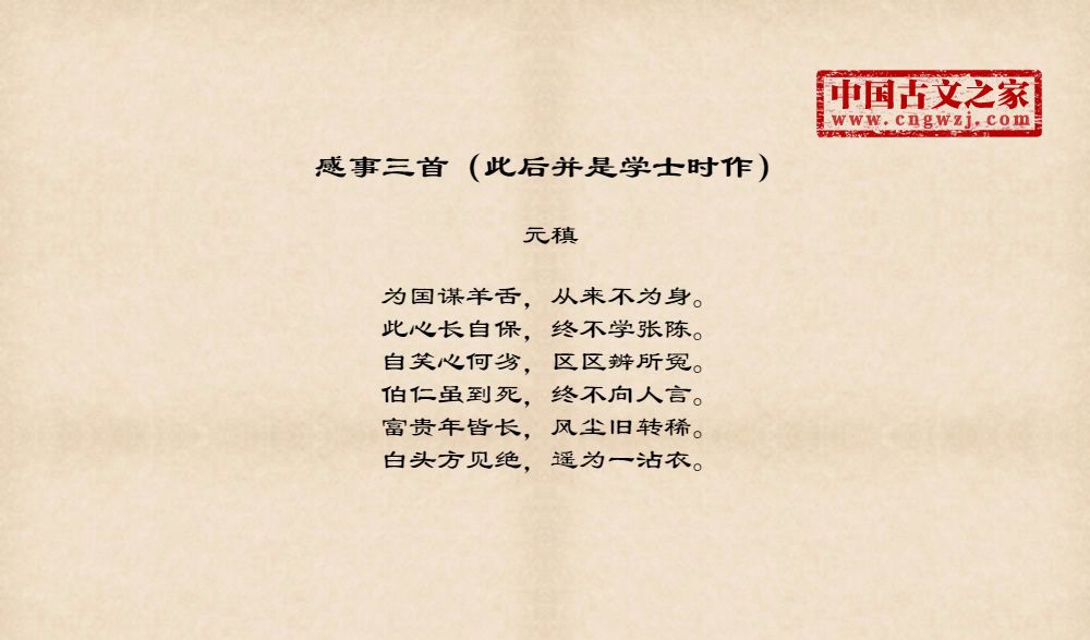 《感事三首(此后并是学士时作)》的原文打印版(元稹)