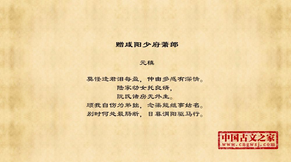 莫怪逢君泪每盈,仲由多感有深情。陆家幼女托良婿,阮氏诸房无外生。顾我自伤为弟拙,念渠能继事姑名。别时何处最肠断,日暮渭阳驱马行。