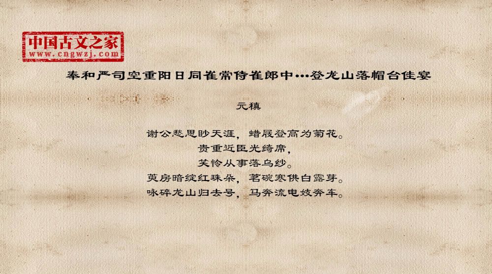 《奉和严司空重阳日同崔常侍崔郎中…登龙山落帽台佳宴》的原文打印版(元稹)