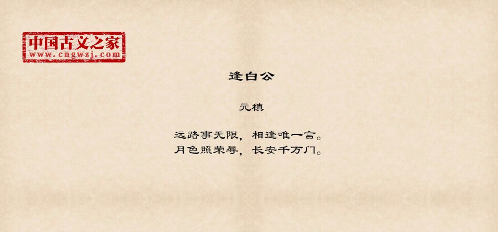 远路事无限,相逢唯一言。月色照荣辱,长安千万门。