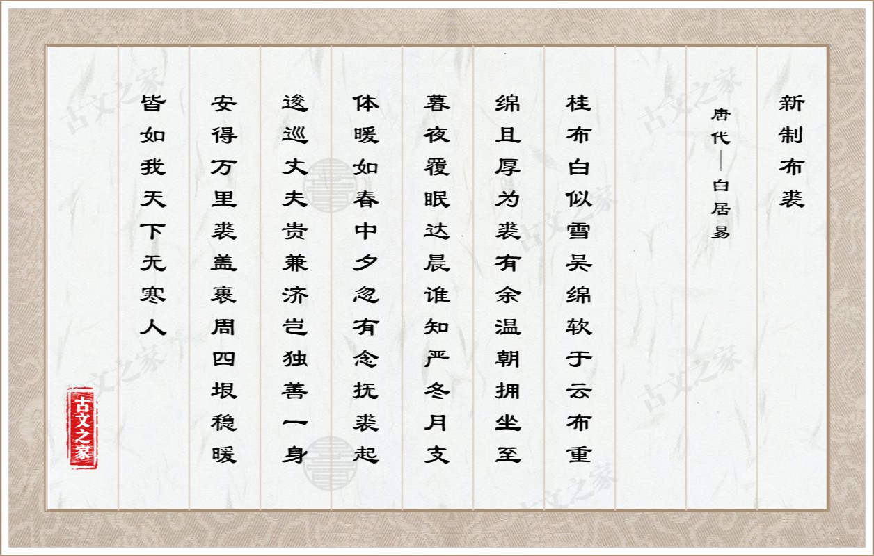 稳暖皆如我,天下无寒人。