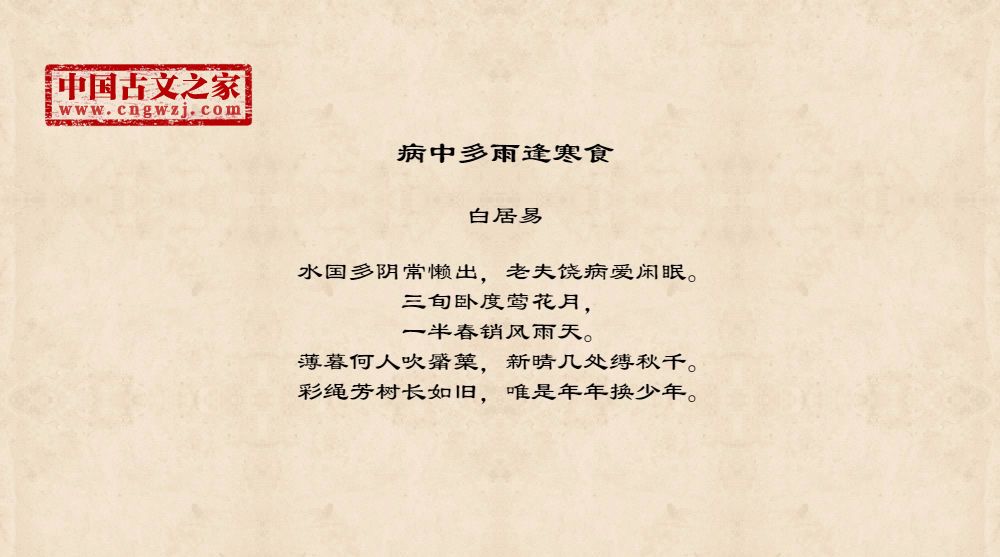 水国多阴常懒出,老夫饶病爱闲眠。三旬卧度莺花月,一半春销风雨天。薄暮何人吹觱篥,新晴几处缚秋千。彩绳芳树长如旧,唯是年年换少年。