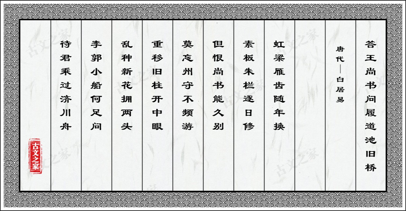 答王尚书问履道池旧桥