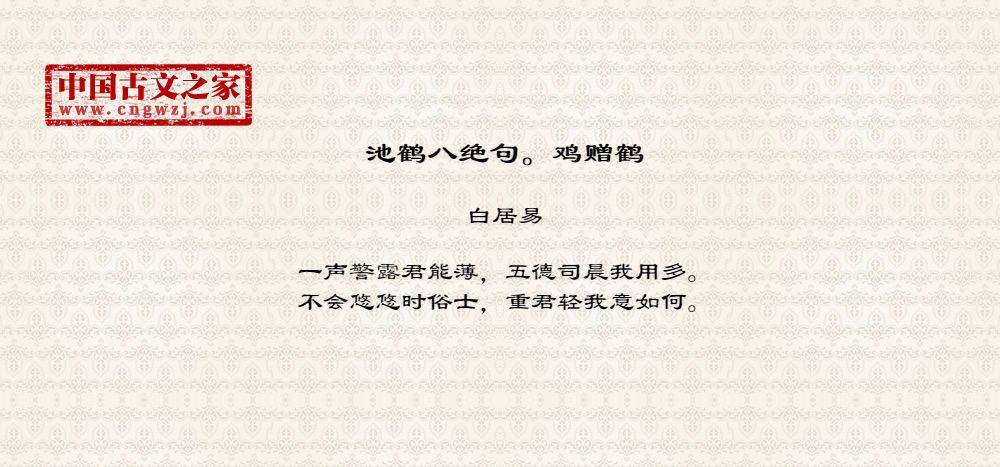 一声警露君能薄,五德司晨我用多。不会悠悠时俗士,重君轻我意如何。
