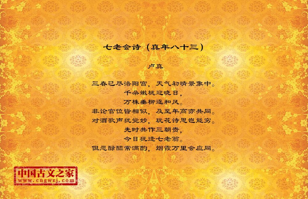 《七老会诗(真年八十三)》的原文打印版(卢真)