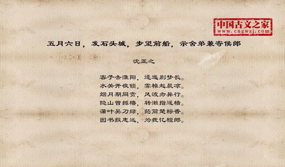 《五月六日,发石头城,步望前船,示舍弟兼寄侯郎》的原文打印版(沈亚之)