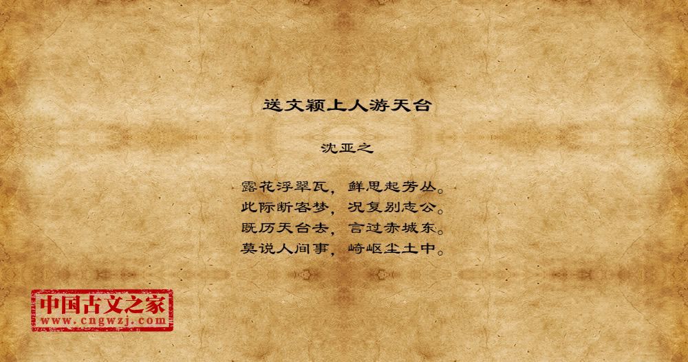 《送文颖上人游天台》的原文打印版(沈亚之)