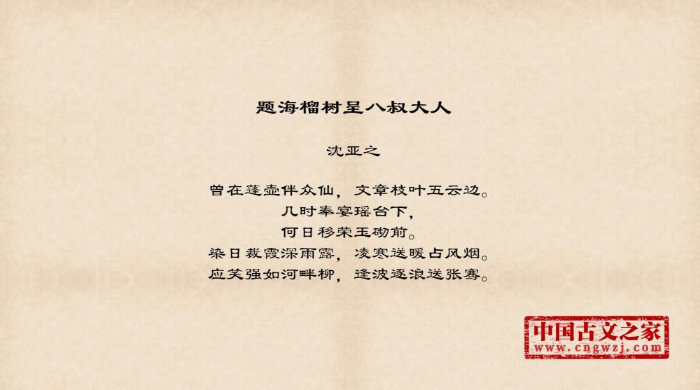 《题海榴树呈八叔大人》的原文打印版(沈亚之)