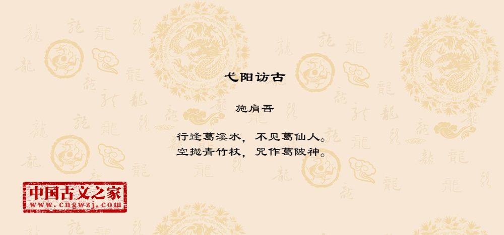 行逢葛溪水,不见葛仙人。空抛青竹杖,咒作葛陂神。