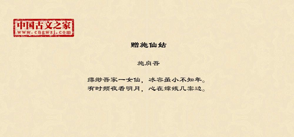缥缈吾家一女仙,冰容虽小不知年。有时频夜看明月,心在嫦娥几案边。