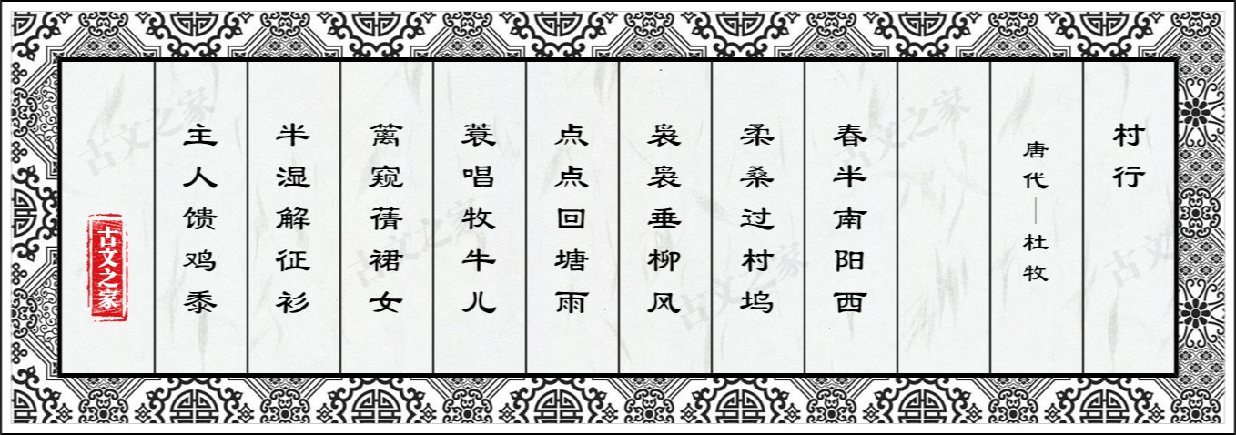 这首诗是杜牧于开成四年(839)春,由宣州到长安做官时途经南阳,在南阳城西农家避雨时受到主人的热情招待,有感而写下的田园村野风景小诗。