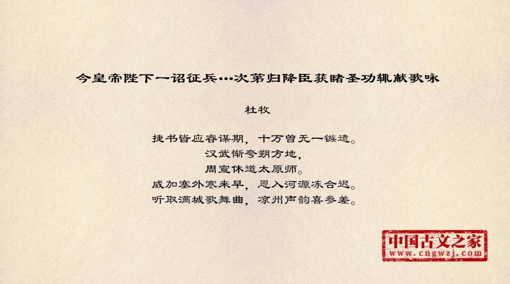 《今皇帝陛下一诏征兵…次第归降臣获睹圣功辄献歌咏》的原文打印版(杜牧)