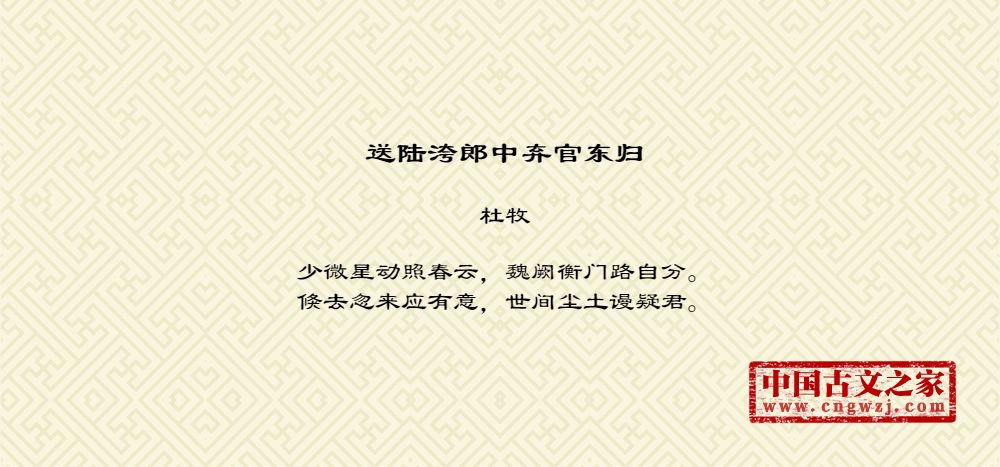 杜牧(公元803-约852年),字牧之,号樊川居士,汉族,京兆万年(今陕西西安)人,唐代诗人。杜牧人称“小杜”,以别于杜甫。与李商隐并称“小李杜”。因