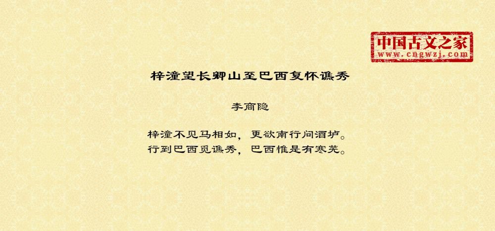 《梓潼望长卿山至巴西复怀谯秀》的原文打印版(李商隐)