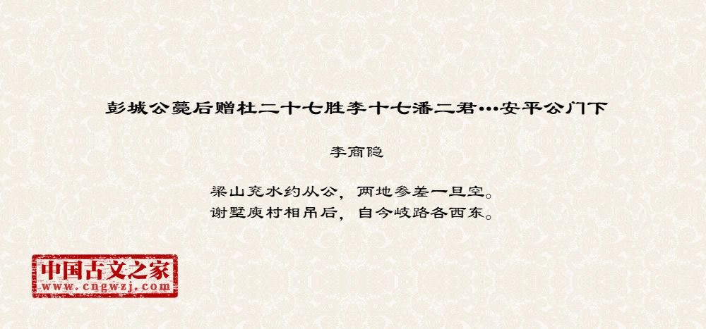 《彭城公薨后赠杜二十七胜李十七潘二君…安平公门下》的原文打印版(李商隐)