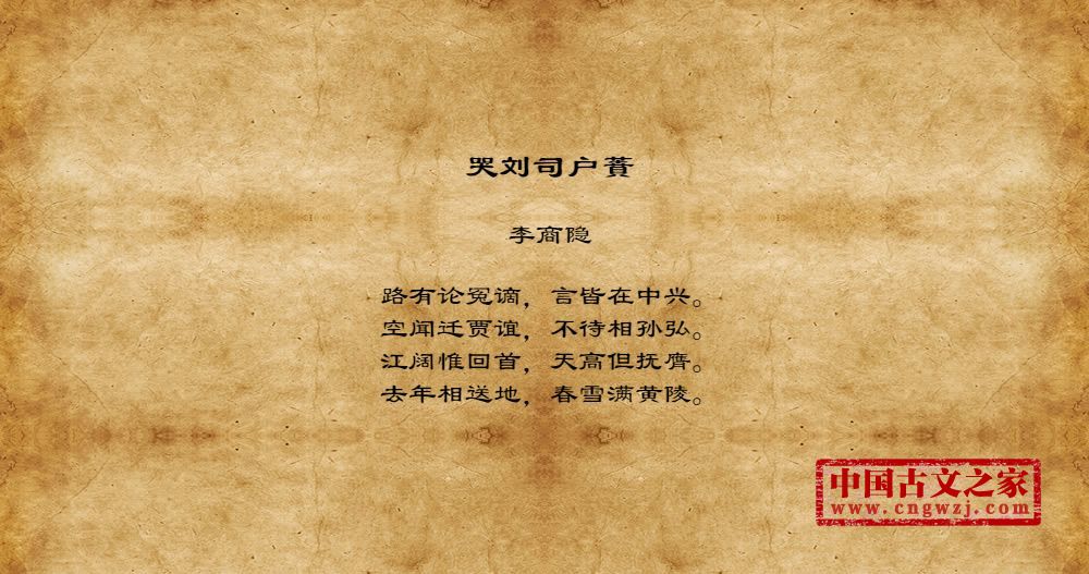 李商隐,字义山,号玉溪(谿)生、樊南生,唐代著名诗人,祖籍河内(今河南省焦作市)沁阳,出生于郑州荥阳。他擅长诗歌写作,骈文文学价值也很高,是晚唐最出色