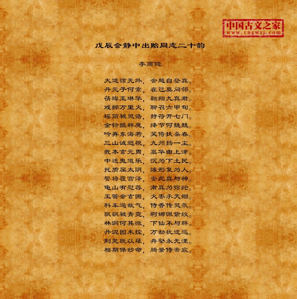 《戊辰会静中出贻同志二十韵》的原文打印版(李商隐)