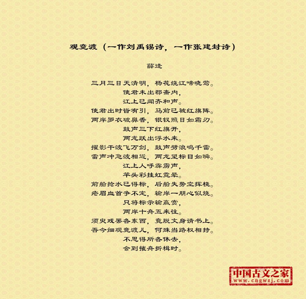 薛逢,字陶臣,蒲洲河东(今山西永济县)人,会昌元年(公元八四一)进士。历侍御史、尚书郎。因恃才傲物,议论激切,屡忤权贵,故仕途颇不得意。《全唐诗》收录