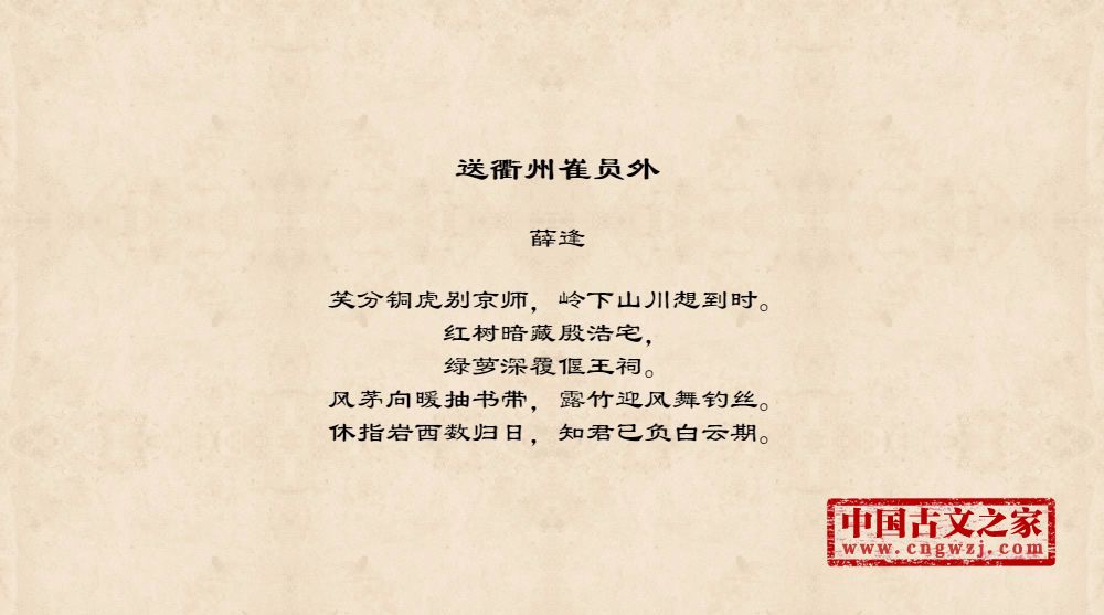 薛逢,字陶臣,蒲洲河东(今山西永济县)人,会昌元年(公元八四一)进士。历侍御史、尚书郎。因恃才傲物,议论激切,屡忤权贵,故仕途颇不得意。《全唐诗》收录