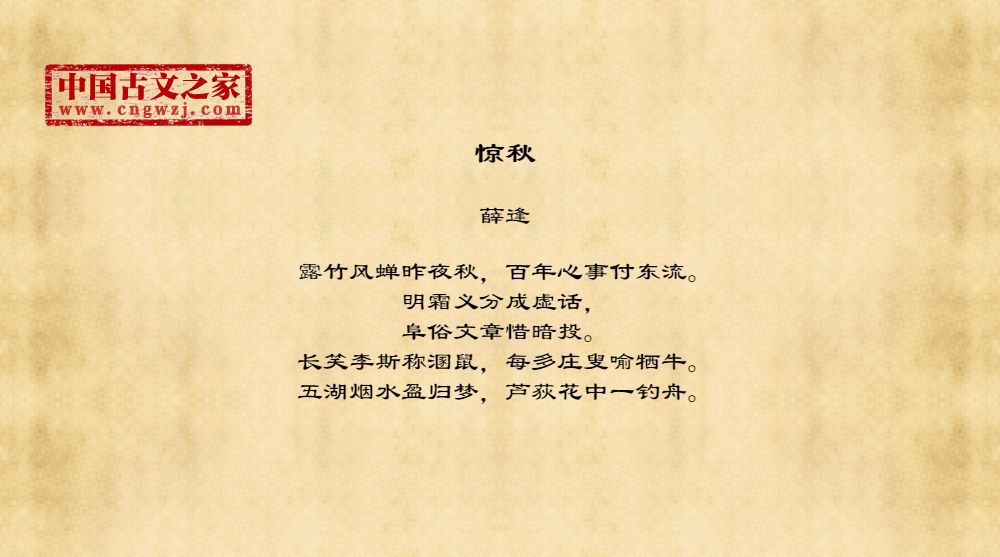 露竹风蝉昨夜秋,百年心事付东流。明霜义分成虚话,阜俗文章惜暗投。长笑李斯称溷鼠,每多庄叟喻牺牛。五湖烟水盈归梦,芦荻花中一钓舟。