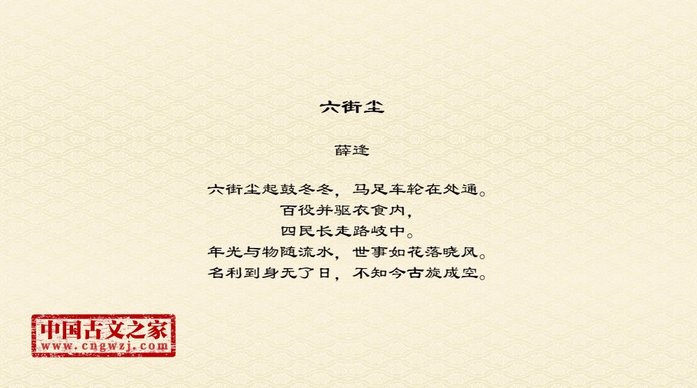 六街尘起鼓冬冬,马足车轮在处通。百役并驱衣食内,四民长走路岐中。年光与物随流水,世事如花落晓风。名利到身无了日,不知今古旋成空。