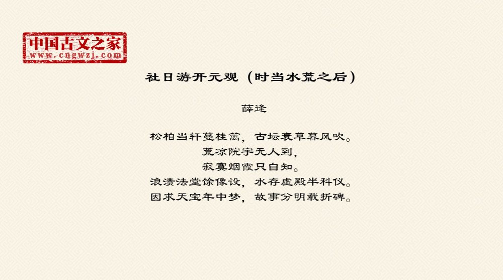 《社日游开元观(时当水荒之后)》的原文打印版(薛逢)