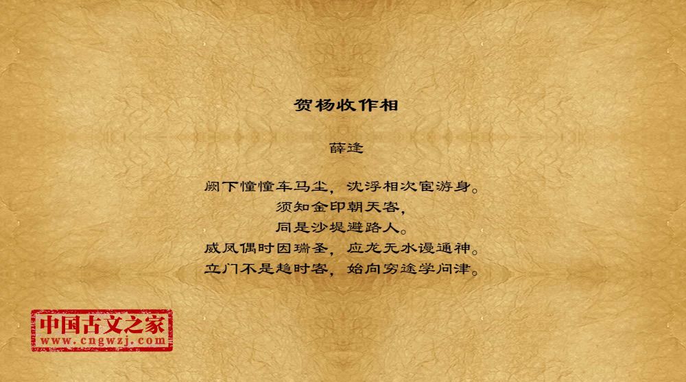 阙下憧憧车马尘,沈浮相次宦游身。须知金印朝天客,同是沙堤避路人。威凤偶时因瑞圣,应龙无水谩通神。立门不是趋时客,始向穷途学问津。