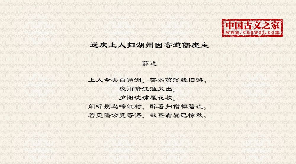 《送庆上人归湖州因寄道儒座主》的原文打印版(薛逢)