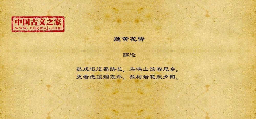 孤戍迢迢蜀路长,鸟鸣山馆客思乡。更看绝顶烟霞外,数树岩花照夕阳。
