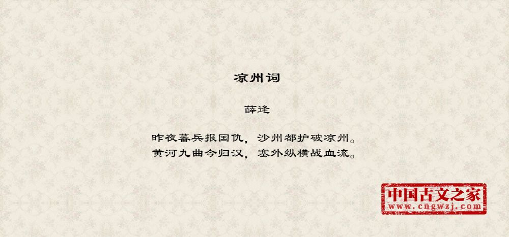 昨夜蕃兵报国仇,沙州都护破凉州。黄河九曲今归汉,塞外纵横战血流。