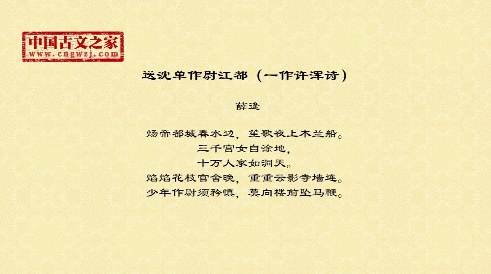 《送沈单作尉江都(一作许浑诗)》的原文打印版(薛逢)