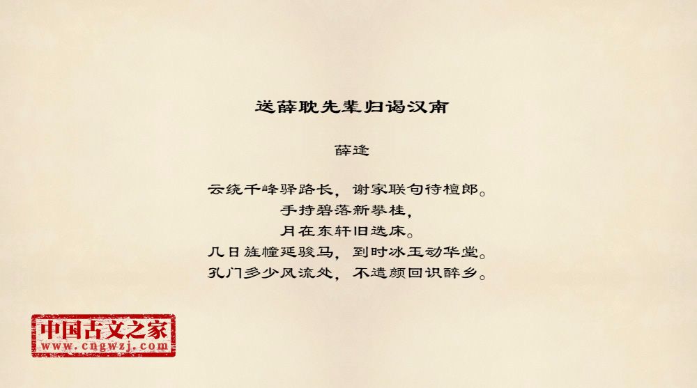 薛逢,字陶臣,蒲洲河东(今山西永济县)人,会昌元年(公元八四一)进士。历侍御史、尚书郎。因恃才傲物,议论激切,屡忤权贵,故仕途颇不得意。《全唐诗》收录