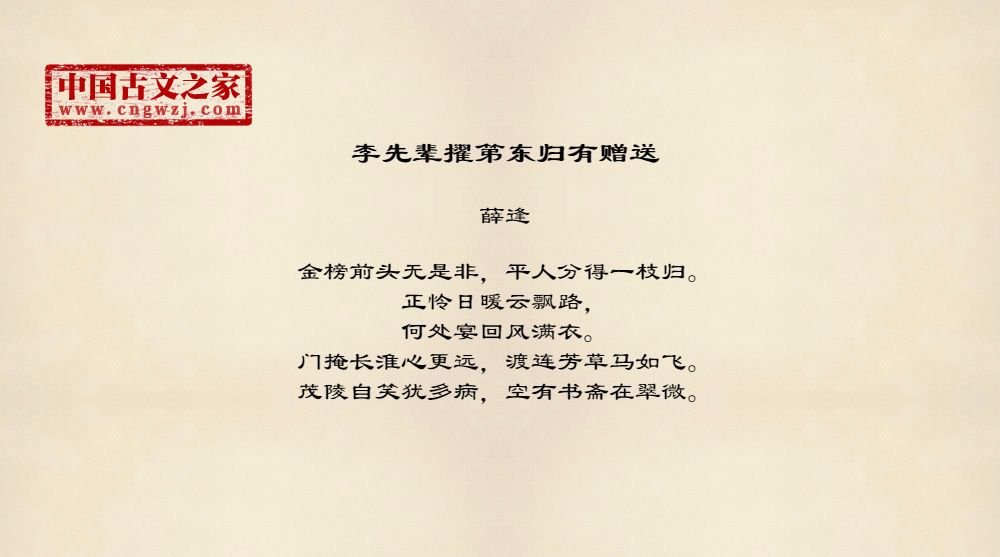 金榜前头无是非,平人分得一枝归。正怜日暖云飘路,何处宴回风满衣。门掩长淮心更远,渡连芳草马如飞。茂陵自笑犹多病,空有书斋在翠微。